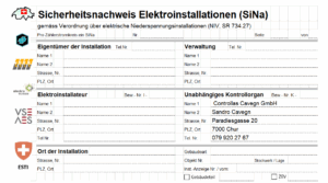 Ausstellung von Sicherheitsnachweisen nach erfolgreicher Kontrolle der Elektroinstallationen gemäß den gesetzlichen Vorschriften der Niederspannungsinstallationsverordnung (NIV) und den Normen der SIA 108.